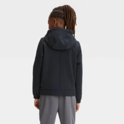 Hooded jacket with long sleeves and designed with a heavyweight recycled polyester fabric and cozy lining in a regular-fit cut. Front full-length zipper allows easy on and off, while the side pockets provide enough space for their hands and small items. Wind- and water-resistant design help keep them protected.
