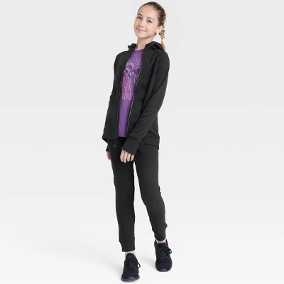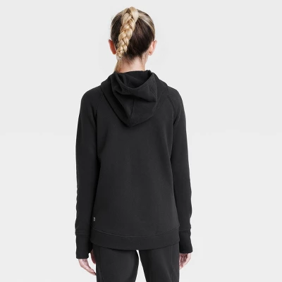 Hooded sweatshirt with thumbholes provides soft coverage for extra warmth during your child’s active days. Designed with raglan sleeves and side pockets, the ribbed accent along the sides provides a snug fit, while the at-hip length makes it easy to layer over their favorite track pants or any other bottoms. The front full-length zipper allows easy wear and removal.