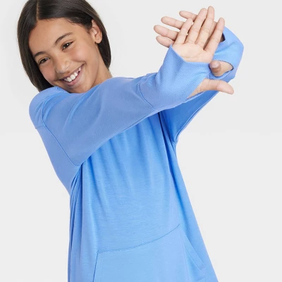 Whether it’s time for sports or fun at home, the soft pullover will help them stay cozy and warm. Designed with drop shoulders, this solid-color pullover feature ribbed cuffs and extended sleeves for extra coverage and a snug fit. The soft and stretchy fabric offers comfort, while the front kangaroo pocket provide a convenient spot for their hands.