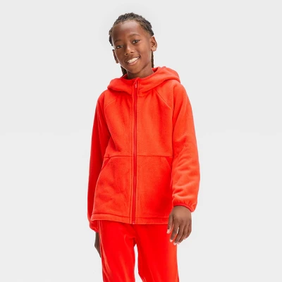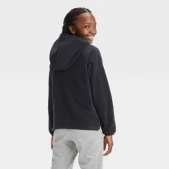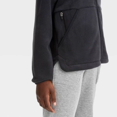 Long-sleeve jacket in a solid color made of fleece fabric to keep your kid warm and cozy. A full front zipper makes it easy to wear and layer while keeping the cold air out, and trimmed cuffs keep the sleeves in place for a snug fit. Attached hood keeps their head covered, while zippered side pockets provide them space for stashing their phone, mittens, or other small items.