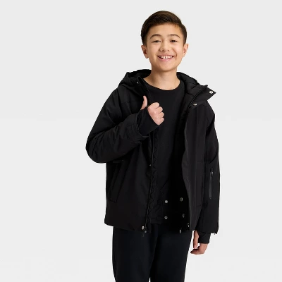 Taffeta snowsport puffer jacket boasts windproof and waterproof properties, helping to keep out cold winds, snow and moisture while your child is sledding, skiing or enjoying other outdoor adventures. Crafted from midweight recycled polyester fabric with full lining and features long sleeves with mitten cuffs and an attached hood to keep them warm and toasty. Tailored in a casual-fit silhouette with an at-hip length. Front full-length zipper under a storm flap with snap buttons and two side pockets plus a zippered on the left sleeve complete the design.