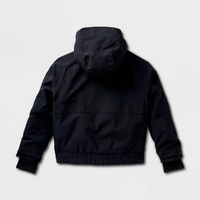 Hooded anorak jacket constructed from windproof and water-resistant breathable fabric protects them against wind, rain and cold weather. Includes attached mitten cuffs to keep their hands toasty and a front full-length zipper for easy on and off. Side pockets complete the functional design.