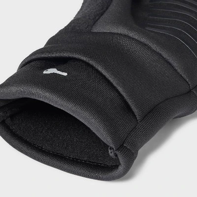 Black powerstretch gloves made from recycled polyester with spandex are designed with four-way stretch for warm, flexible comfort. Hemmed cuffs help to keep out the wind and cold. Touch screen compatibility lets you use your phone or tablet without removing the gloves for extra convenience.