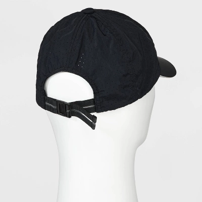 This baseball cap with its ventilating design is perfect for ball games and more. Made from comfortable, lightweight fabric and topped off with reflective details, a mesh inset and an adjustable back buckle. Plus, the solid black hue with contrast piping is sure to match whatever you’re wearing.