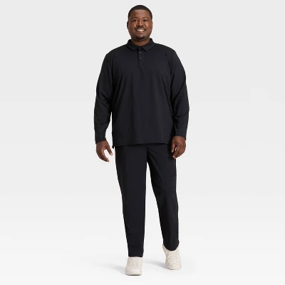 Long-sleeve shirt in a solid hue is crafted from recycled polyester-spandex blend moisture-wicking fabric that stretches four ways for cool, flexible comfort. Polo collar adds a touch of classic style, and the UPF 50+ rating helps shield you from harmful UV rays. Tailored in an athletic fit and falls below the hip for easy layering.