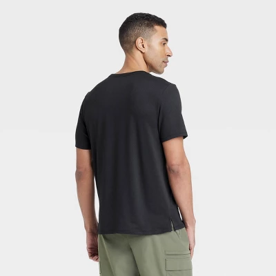 Performance T-shirt in a solid hue with a pullover design, crew neckline, below-waist length and short sleeves. Made from midweight recycled polyester-spandex blend jersey fabric with flat seams, side slits and a regular fit for flexible wear that moves and stretches with you. Boasts moisture-wicking, quick-drying and odor-resistant properties to keep you feeling fresh, cool and dry during any activity.