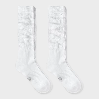 Complete your activewear outfit with the Women’s Cushioned Scrunch 2pk Athletic Crew Socks from All In Motion™ 4-10. Featuring a soft, midweight knit fabric, these socks provide all-day comfort with a cushioned sole and arch support for a secure fit. The scrunched design adds a relaxed vibe, making them great for both workouts and casual wear. Whether you’re hitting the gym or lounging in style, these crew socks keep you comfy and supported.