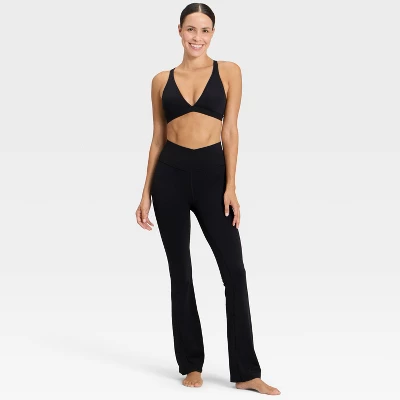 Everyday soft crossover flare leggings with an ultra high-rise waist. Crafted from midweight knit fabric with added spandex and flat seams for a comfortable fit that moves and stretches with you. Boast moisture-wicking, quick-drying properties to keep you feeling cool and fresh during any activity. Crossover-accent front completes the sporty design.