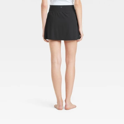 Everyday soft skort designed in a solid hue with a mid-rise cut, above-knee length and an athletic fit. Made of a midweight knit fabric blend of nylon and spandex with built-in shorts for flexible wear that moves and stretches with you. Boasts moisture-wicking and quick-drying properties to keep you feeling cool and dry during any activity. An elasticized pull-on waistband and a hidden pocket complete the design with functional flair.